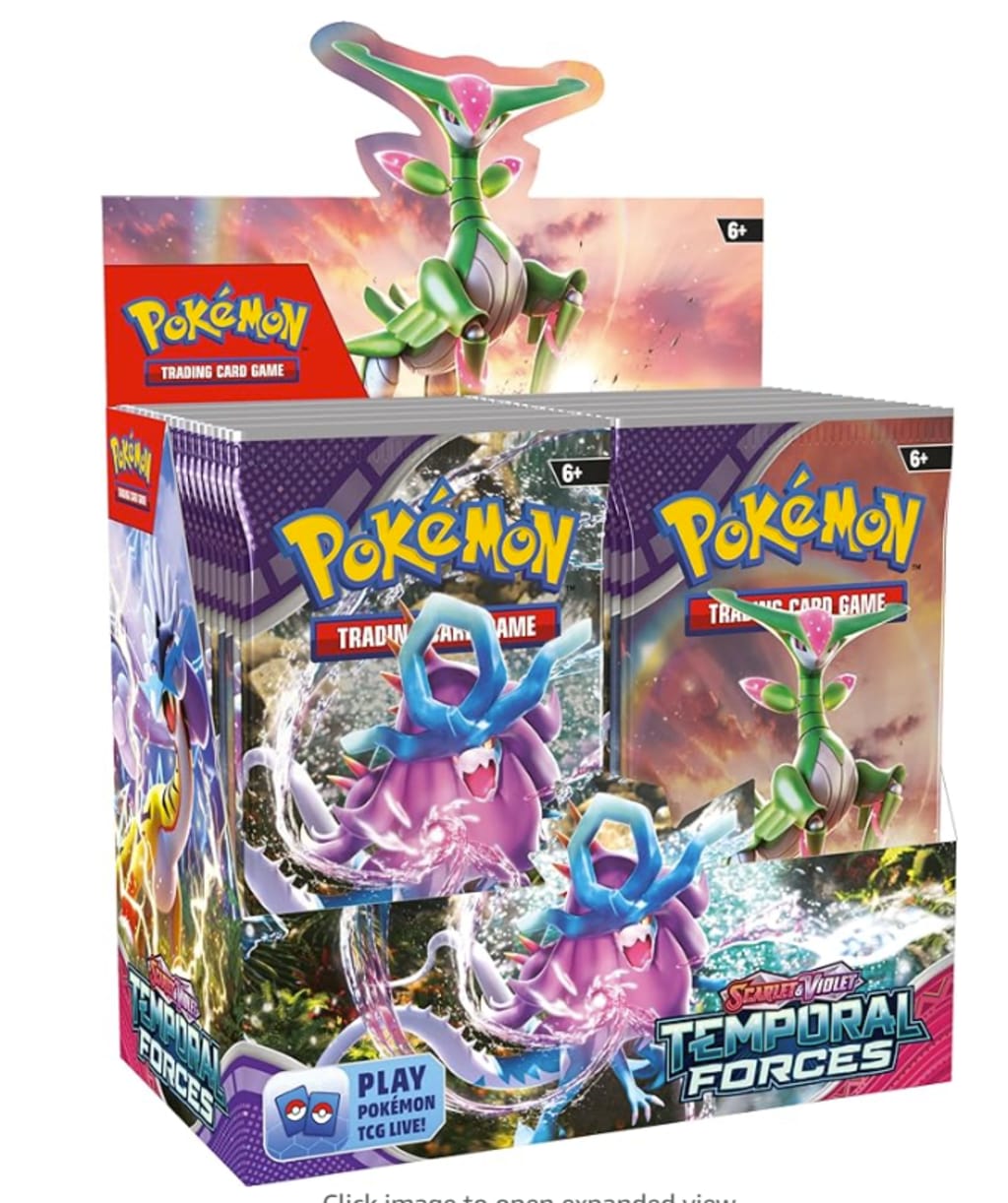 Booster Packs: Each Display Box contains 36 booster packs, each with 10 cards from the Temporal Forces set. These packs are designed to provide a diverse mix of Commons, Uncommons, Rares, and potentially Holo Rares.