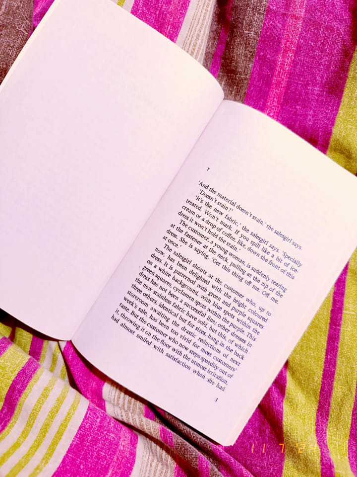 Lise has been in the same dead end job for a really long time and longs to go on holiday and be able to relax in a change of scenery. This is exactly what she does and upon her departure, we know a Lise who is not quite right in the head. She argues with salespeople and retail staff, she behaves erratically and she even meets an older man named Bill who can't stop talking about how 'Yin and Yang' are important in life and how we eat our food. Her clothes are unusually colourful, often making people stare at her and her intentions for the trip (though it states it is for her mental health) are kind of sketchy from the very outset of the novel.