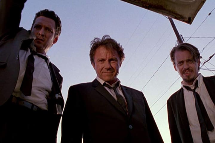 In a diner on the outskirts of Los Angeles a group of similarly dressed guys sit around a table and discuss the true meaning behind Madonna's song “Like A Virgin” and the various reasons to tip and not to tip. Mr. White (Harvey Keitel), Mr. Brown (Tarantino), Mr. Orange (Tim Roth), Mr. Blonde (Michael Madsen) and Mr. Pink (Steve Buscemi), have been called together by Joe Cabot (Lawrence Tierney) to rob a jewelry store of a couple million dollars worth of uncut diamonds.