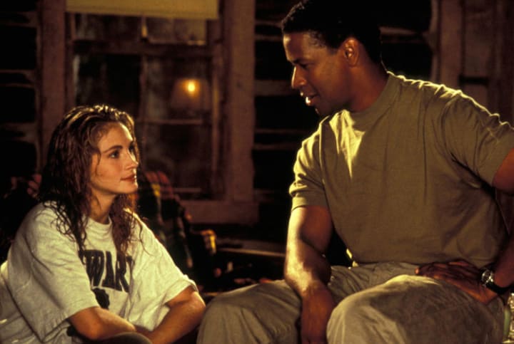 You know what is weird about The Pelican Brief? The brother-sister chemistry of Denzel Washington and Julia Roberts. While fans expected them to have a romance, the stars fostered an almost anti-chemistry on screen. It was as if they had zero interest in one another romantically. This is by design for the script as Darby is just days from having watched her Professor boyfriend die horribly. It's sensible that she doesn't look to throw down with the first man she meets, even as that first man is Denzel Washington at the height of his beauty. That said, this kind of traumatic backstory rarely stopped Hollywood movie stars from falling into bed together before. So why do Denzel and Julia have so little romantic spark?