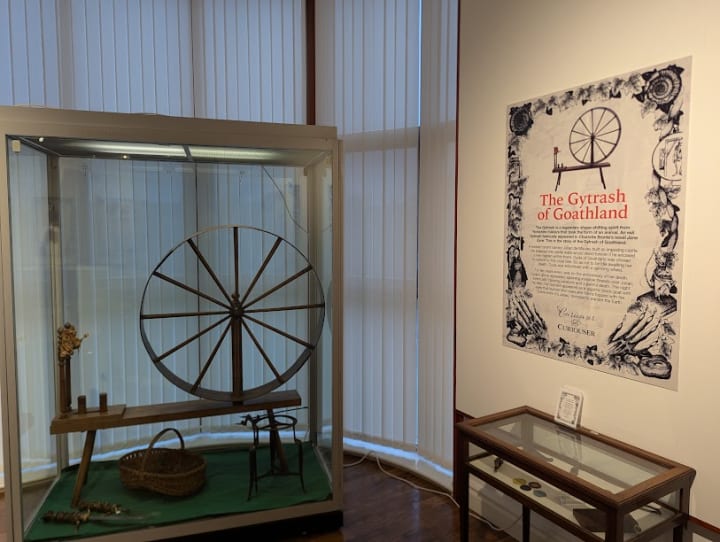 A wicked tyrant named Julian de Mauley built an imposing castle. He believed the castle walls would stand forever if he encased a live malden within them. Gyda of Goathland was chosen to submit to this cruel fate. So as not to be idle awaiting her death, Gyda was entombed with a spinning wheel.