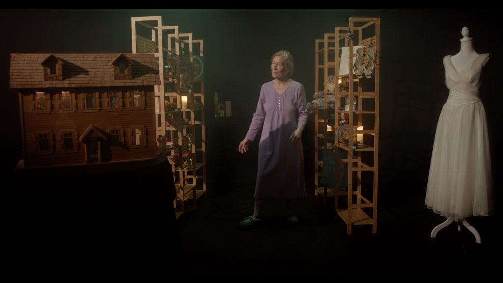 Anna inspects the familiar objects and observes slides showing fading memories. At one moment, a phone rings with familiar voices on the other end, but Anna can’t quite make out. It distinguishes the people speaking to her, but the words no longer make sense.