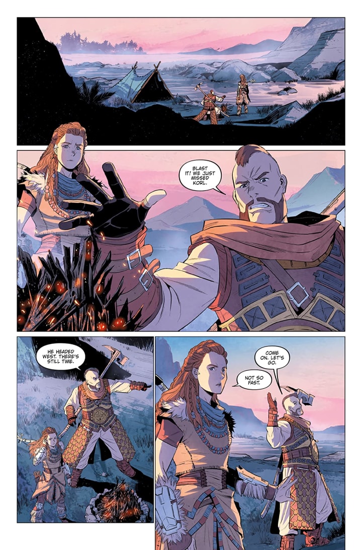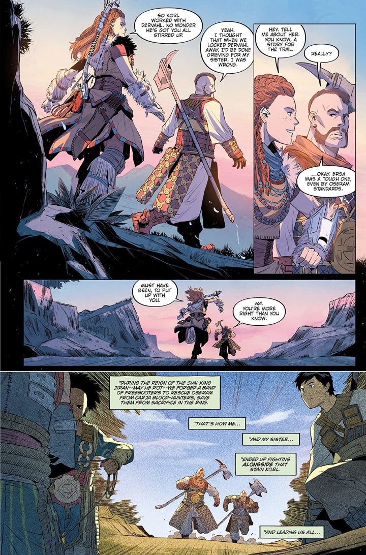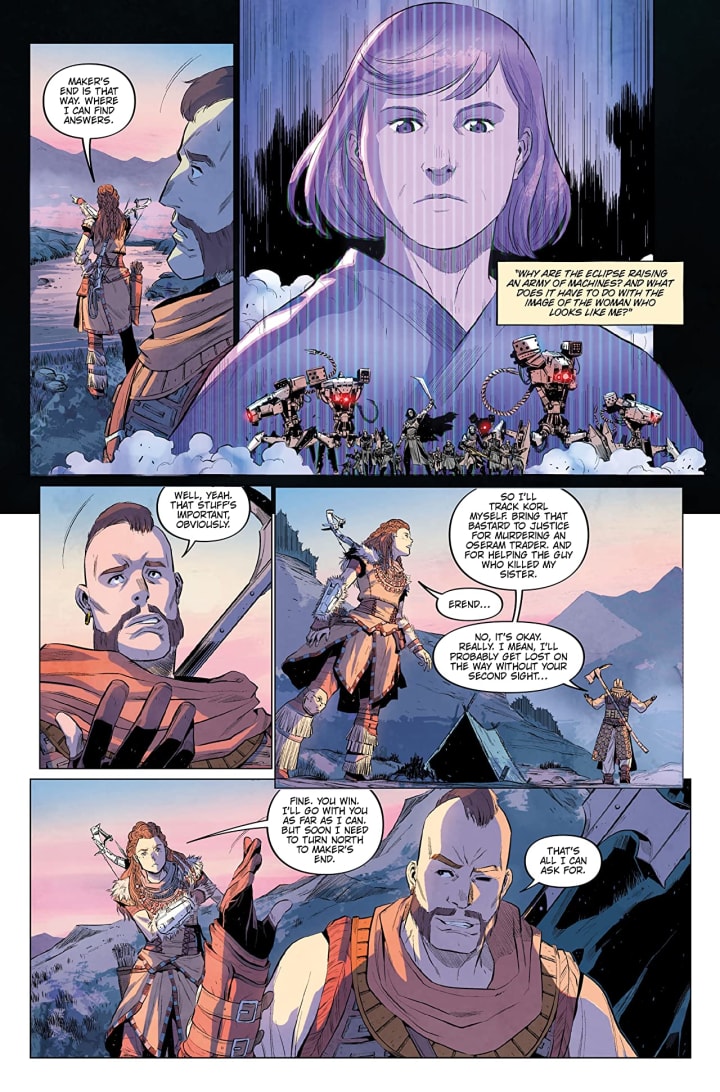 Aloy and Erend fend off deadly machines as the pair hunt down an Oseram tribe member’s killer!