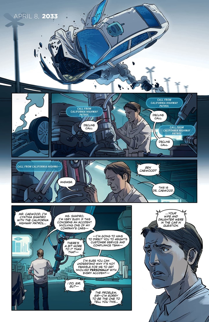 I liked this a heck of a lot more than I thought I would and that’s huge because I already had high expectations for this because Marc is writing the story. As the story is being told you find yourself being drawn into the story and you begin to see that Dr. Caewood, must use the Doctor denotation, is a very driven individual. The kind that once he starts working on a problem or project that’s solely where his focus is. We know people like that in the real world who aren’t snobbish or conceited but have that tunnel vision and have that uncontrollable need to be working on what is in front of them. I see this in Ben and in the first few pages you get that sense of who he is and I think that’s pretty amazing.
