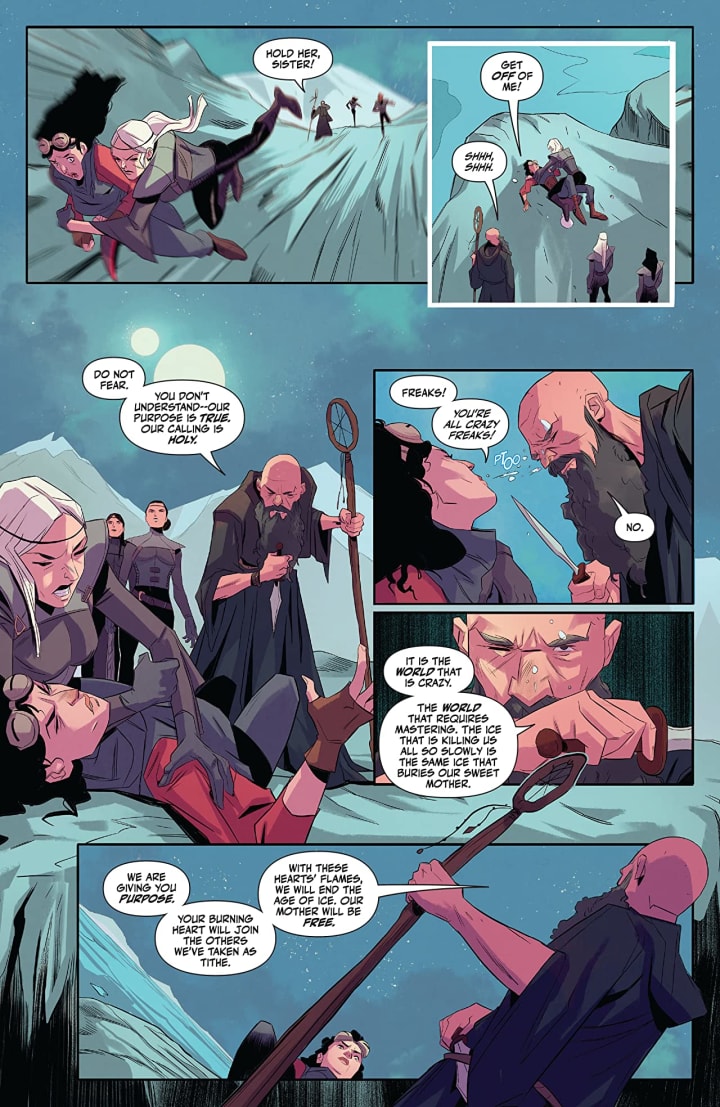Honestly I don’t think it looks like two creative teams worked on the interiors here and that’s pretty brilliant in its own right. One thing that I do want to say is that we NEED to see backgrounds utilised more. When we see buildings or the worlds they light up the readers’ imagination and they really enhance and expand the moments so I for one think we need to see more of them. How we see the composition of the panels that brings out the depth perception, sense of scale and the overall sense of size and scope to the story is well achieved. The utilisation of the page layouts and how we see the angles and perspective in the panels show a remarkably talented sets of eyes for storytelling. The various hues and tones within the colours being utilised to create the shading, highlights and shadow work shows this sensational understanding for how colour works.
