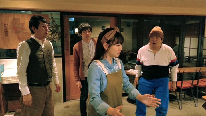 Each loop leads to the next and changes with the arrival of one of Kato’s many friends including his café worker, Aya (Riko Fujitani), his best friend Komiya (Gota Ishida), and two more friends that Komiya invites into the loop, Ozawa (Yoshifumi Sakai) and Tanabe (Masahi Suwa). It is Ozawa who theorizes that if they take Kato’s computer from his apartment and put it in front of the monitor in the café that they can create infinite loops that will allow them to see further than 2 minutes into the future.