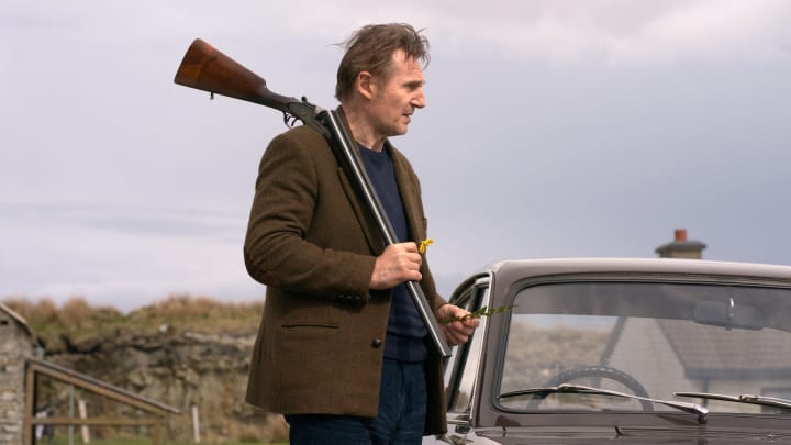 Liam Neeson stars in In the Land of Saints and Sinners as Finbar, a hitman who comforts himself with the notion that he only kills bad people for money. Finbar has killed a lot of people, hiding their bodies under freshly planted trees in a forest near his small cottage. Finbar has reached a point where he'd like to retire, give up killing, and take up a hobby like gardening. He also has his eye on a neighbor at a nearby cottage who is soon to be a widow. The pair have a sad chemistry that could become love.