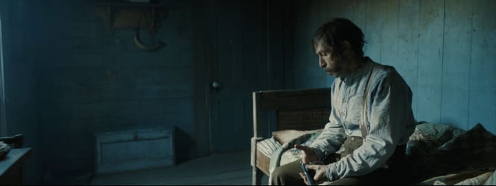 Old Henry was written and directed by Potsy Ponciroli, a veteran of television and music video production. His style is strong, he frames shots well and the cinematography, by his regular collaborator and fellow TV veteran, John Matysiak, is appropriately gray, brown and dirty. The look of the movie reflects the harsh and sudden violence of a modern western. The framing is rather basic, squaring up actors in window frames or door frames, but it is effective in its visual simplicity.