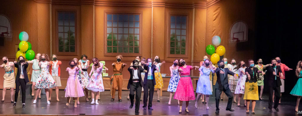 A hand goes out to the entire ensemble filling roles as students, teachers, or backup singers on a radio station. Everyone was having a fun time. A lot of hard work went into multiple dance numbers.