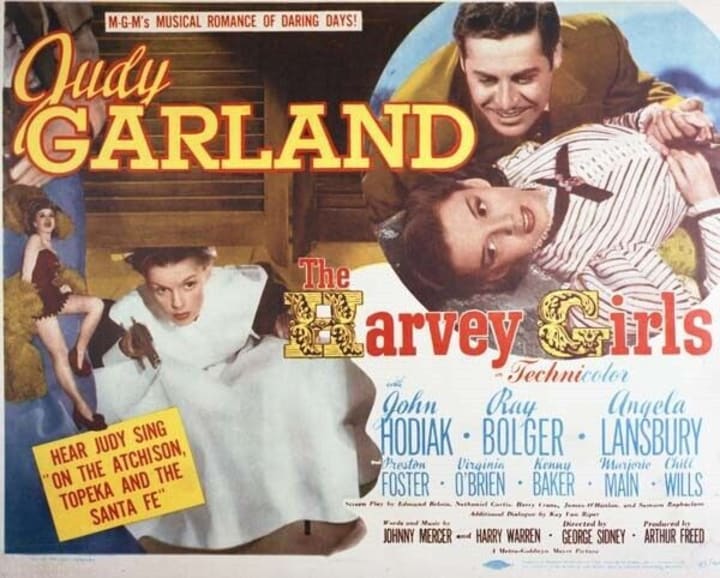 MGM came out with the American musical film “The Harvey Girls” in 1945. It was based on the 1942 novel of the same name by Samuel Hopkins Mayer, about Fred Harvey’s Harvey House waitresses. The film was directed by George Sidney and starred Judy Garland, Ray Bolger, and Angela Lansbury, among others, including future star Cyd Charisse in her first speaking role on film.