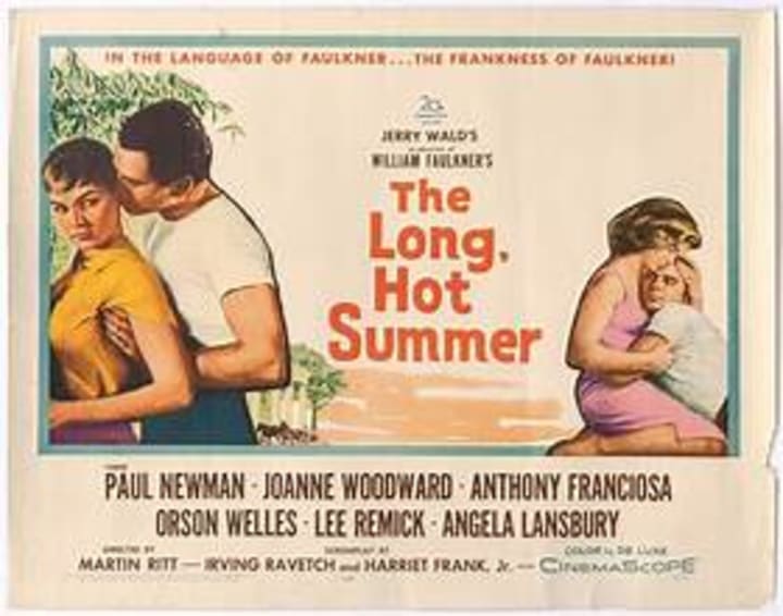 The Long, Hot Summer” is a 1958 American drama starring Paul Newman, Joanne Woodward, Anthony Franciosa, Orson Wells, and Angela Lansbury in a supporting role. Directed by Martin Ritt, the film is based in part on three works by William Faulkner – the 1931 novella “Spotted Horses,” the 1939 short story “Barn Burning,” and the 1940 novel “The Hamlet.”