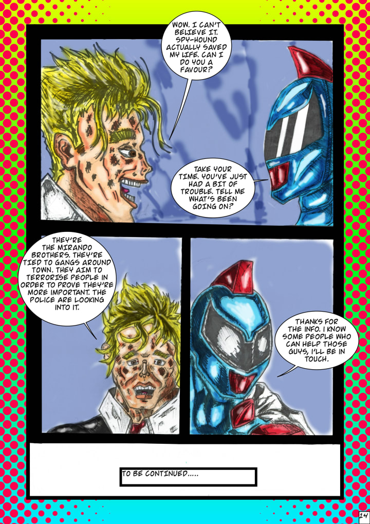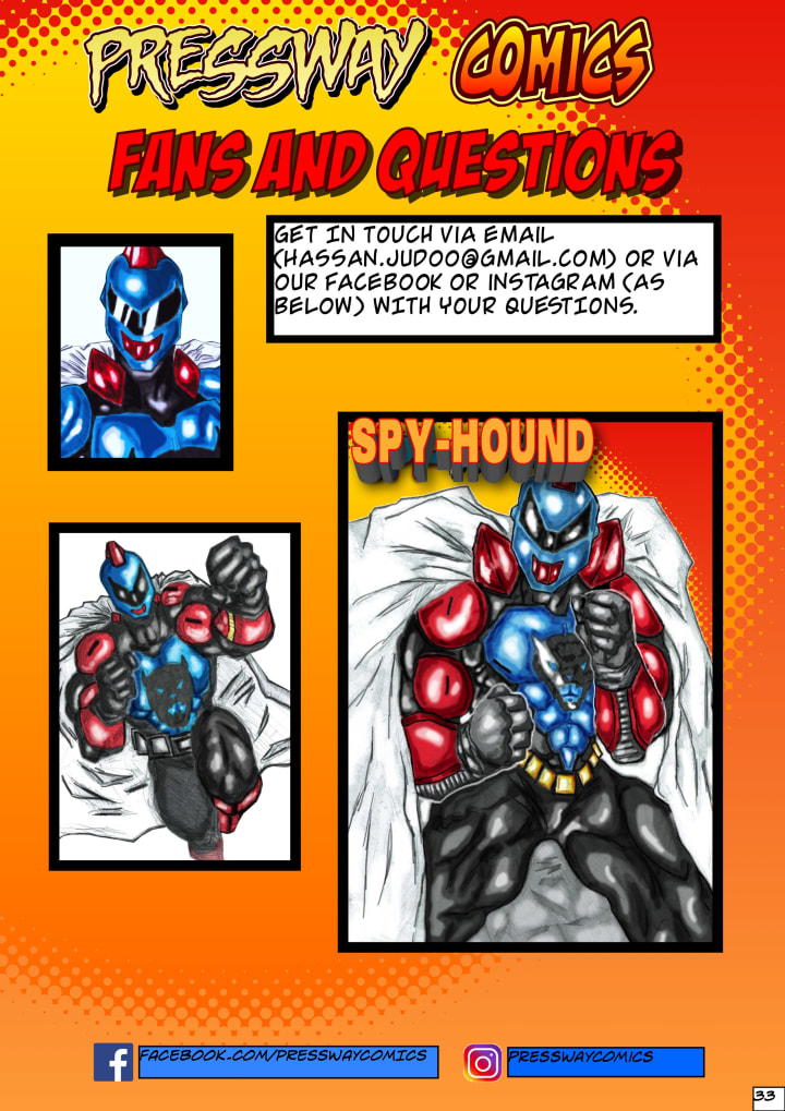 This incident motivates him to change not just his community, but the world. But in order to do this, he must research the Perros De Caza, a group of Spanish Soldiers who posses supernatural powers. He also works for a company called The Knights Alliance International - a charity that employs people who posses supernatural and human abilities in order to protect the people. They then name Kieran's alter ego - Spy-Hound a sophisticated, highly articulate fighting superhero.