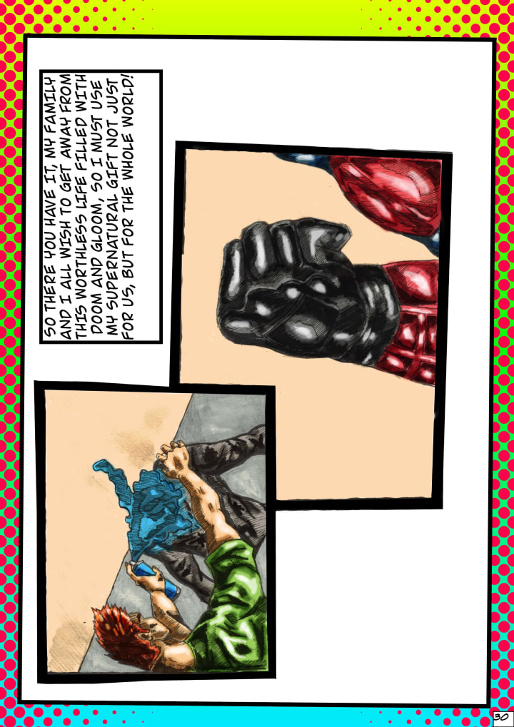 This is a comic I've been working on. It's about a student in school who has ambitions of helping fellow students and members of the public to find their strength and courage. The student's name is Kieran Kitterson.