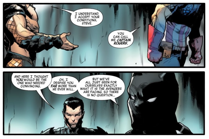 Black Panther has a clear response to this as he states that he still hates Namor. He doesn’t hold back as he says, “Oh, I despise you far more than he ever will. But we’ve all just seen for ourselves exactly what it is the Avengers are facing. So...
