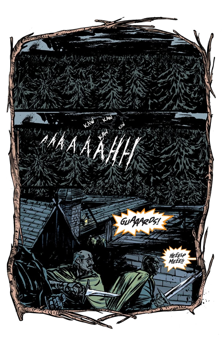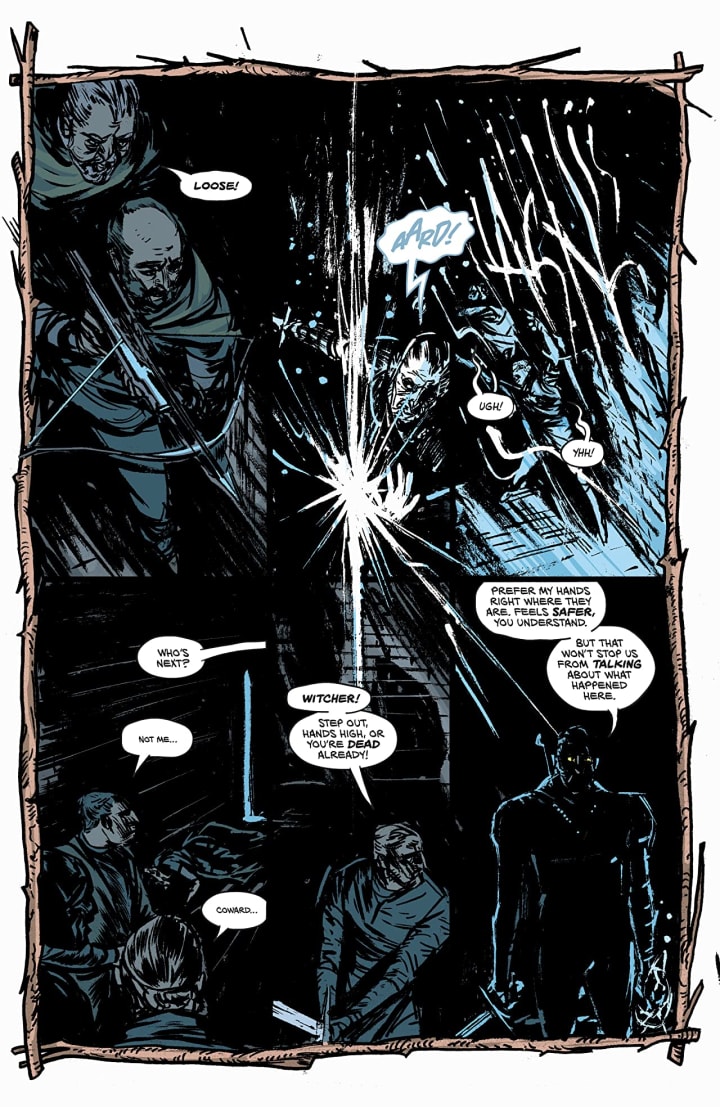 I am absolutely loving the way that this is being told. The story & plot development we see through how the sequence of events unfold as well as how the reader learns information is presented exceptionally well. The character development we see through the dialogue, the character interaction as well as how they act and react to the situations and circumstances which they encounter. I really like how we see Geralt come to the realisation of the truth and how this affects him. The pacing is excellent and as it takes us through the pages revealing more of the story it has this weird and interesting effect on the reader.