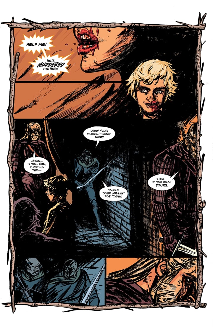 As we go through the pages of this issue and we see Geralt break things down for us as he reveals just what exactly has been going on is something that I wasn’t expecting to see and yet it is bloody brilliant in the way it’s thought up and executed. Bartosz really has a great way in how he approaches crafting a story and then bringing to life for the reader and it makes him an exceptional talent. We see how exceptional he is through the quality of the writing and characterisation and how they inspire the interiors to be so incredibly stylised to enhance the words.