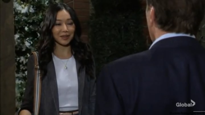At the end of Monday's episode, Jack answers the front door to find his granddaughter on the other side. Allie Nguyen (Kelsea Wang ) has shown up unannounced and asks her granddad if she has come to Genoa City at the wrong time'