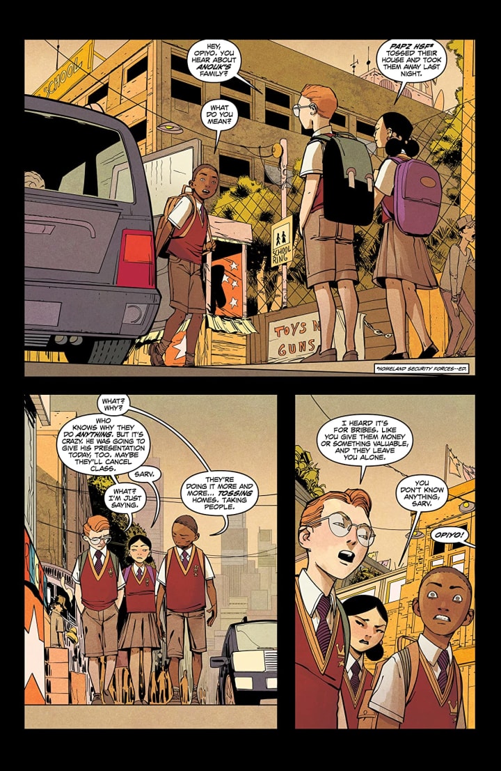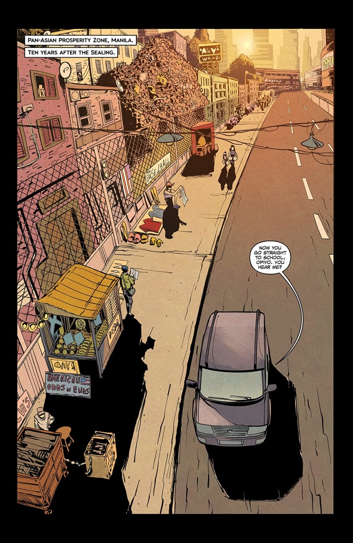 It has been a while since I’ve reviewed this series as well. I like that I have the time to get back to some of these series. I really like the opening here and this look at the early life of Opiyo, or Ace, and we see how he got the moniker that he goes by. Also it’s a great look at a part of the world, in this case Manila, ten years after the sealing and how that event changed life in places such as this. Once the United States builds the wall and shuts out the rest of the world it has that ripple effect and it’s nice to see these effects. Now Uncle Sam has been ferrying the group to their next stop and this one I like for a myriad of reasons leading up to and including the cliffhanger ending. What we see opens up this realm of possibilities to be explored and if Ace is supposed to write an epic story this is certainly one of those important stops on his journey.