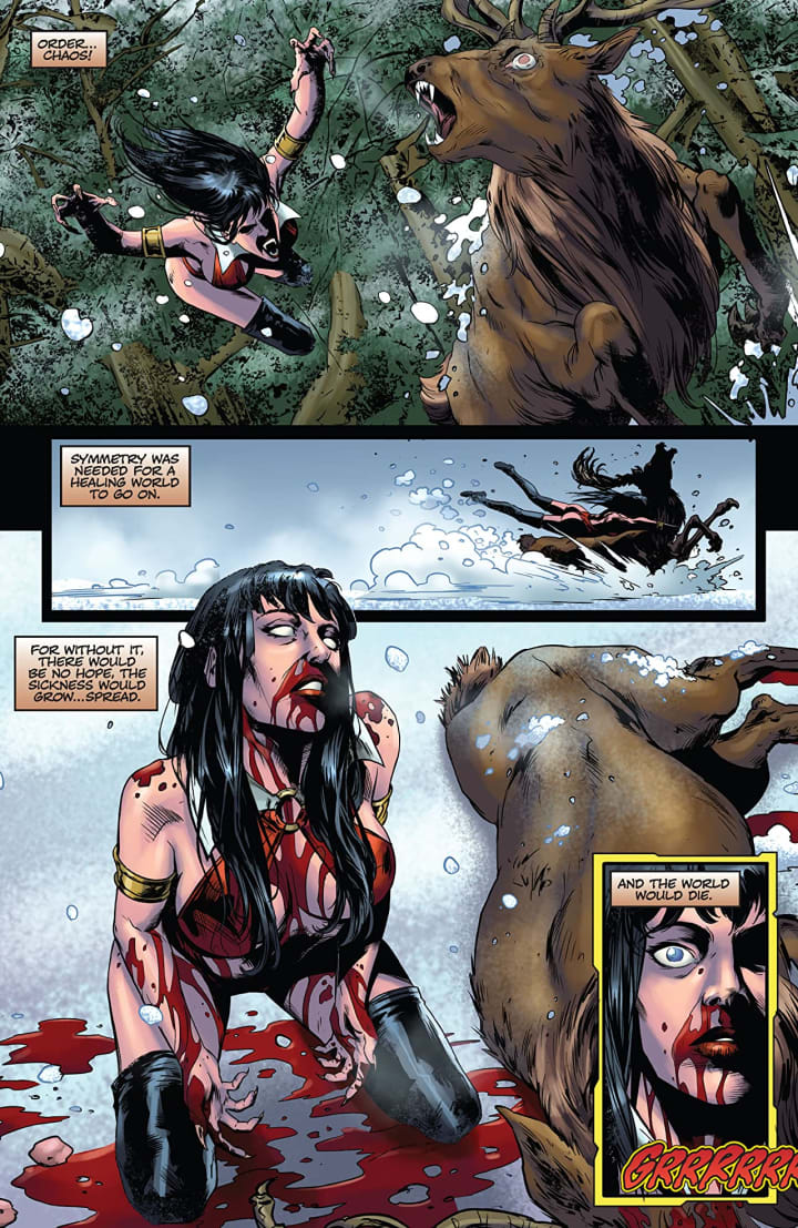 I really am very much enjoying how we see this transition from story to story, issue to issue. This is how I believe that comics should all be told, as if each day and each adventure pretty much comes one after the other without any real sense of downtime. I mean it’s a post-apocalyptic world and Vampirella is in need of massive healing mentally and physically so yeah there shouldn’t be any downtime. This series is brilliantly done from it’s strong, interesting writing, it’s superior characterisation and these mindbogglingly brilliant interiors.