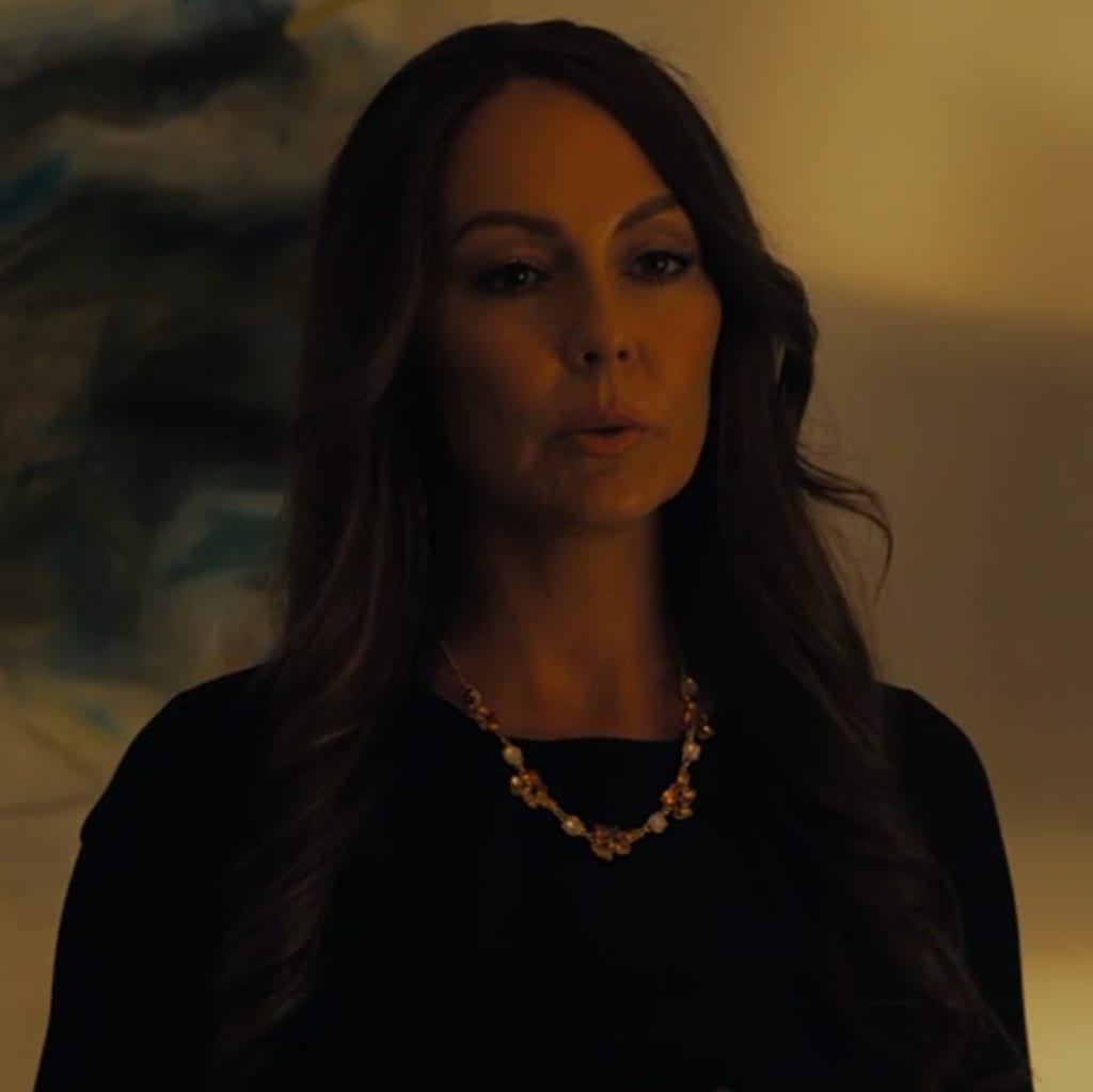 First Class Fear aired on Lifetime Movie Network on September 2, 2022, and featured Christy Tate as the film's hidden villainess, Paula Carter. Tate made her Lifetime film debut in 2021's Sorority Sister Killer as the evil Lana McCray, and 2022 saw her play two heroic roles before turning heel again with this deliciously wicked role. I did see Reel One's trailer many months ago, which did give away Paula as the villainess, hence my reason for looking forward to this film. Paula Carter was quite an interesting villainess; she was ruthless and fiendish, but even in her reveal to Sophie, she shows some semblance of care for her intended victim, though that is also mixed with some sadistic comments about her actions. Tate acted out every facet of Paula's personality very well--her motherly care towards Carolyn, her concern about her daughter to Grace, and her unhinged demeanor following her reveal.