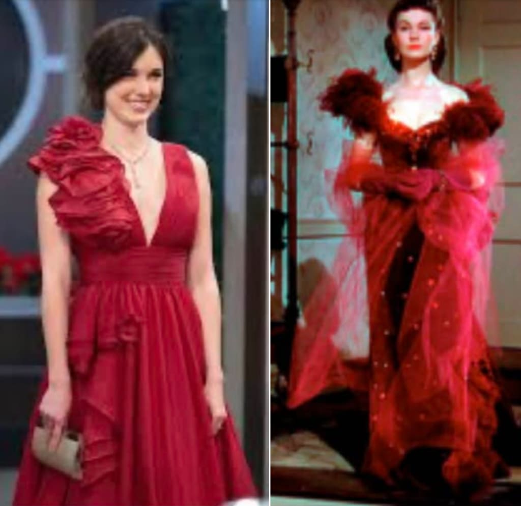 Some General Hospital fans wondered why Willow Corinthos (Katelynn MacMullen) stood alone on the red carpet for a few moments in a crimson dress. I immediately noticed the similarity between Willow and Scarlett O'Hara (Vivian Leigh) from Gone with the Wind. I am certain others did as well.