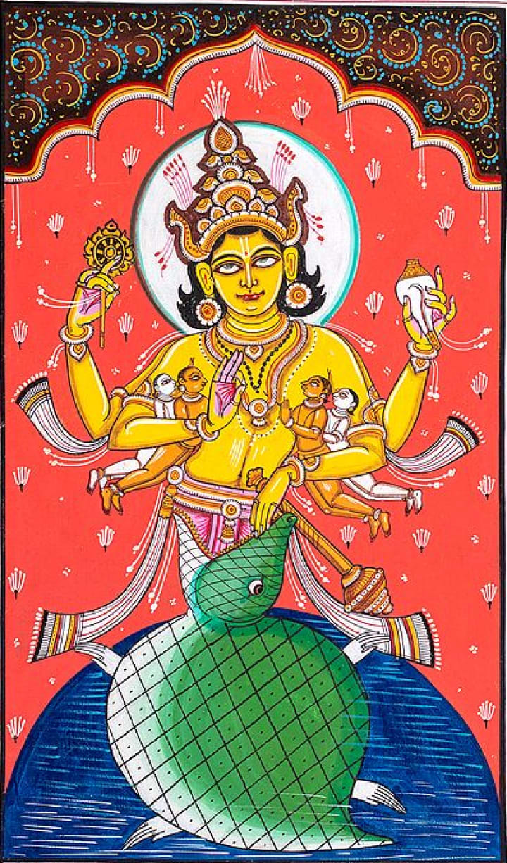 1.Matsya (the fish) — Matsya is the first avatar and represents life’s emergence in water. In this form, Lord Vishnu saved the sage Manu and the seven sages from a great deluge by guiding them and their boat to safety. This avatar symbolizes protection and preservation of life.