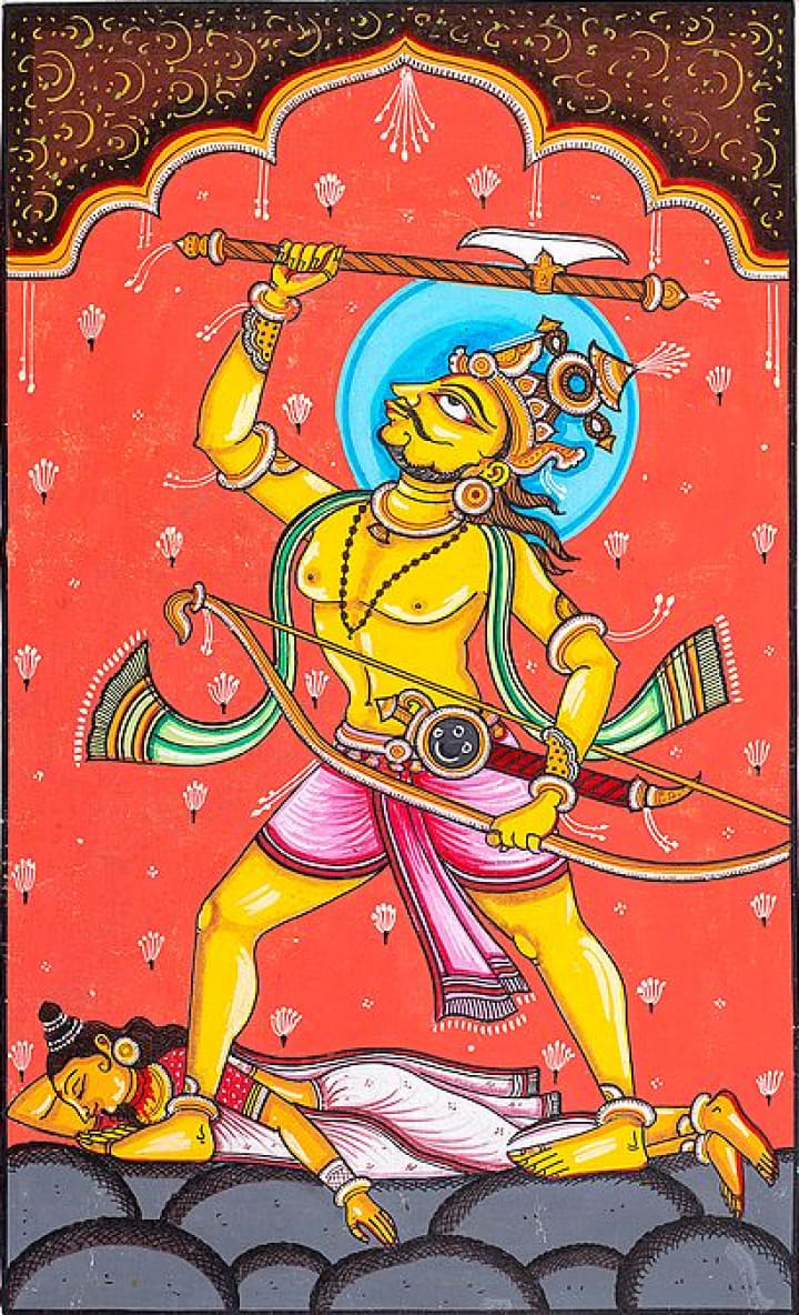 6.Parashurama (the warrior with an axe) — Parashurama, a Brahmin warrior with an axe, was born to rid the world of corrupt Kshatriya rulers. His avatar signifies the warrior aspect of Vishnu and the restoration of justice.