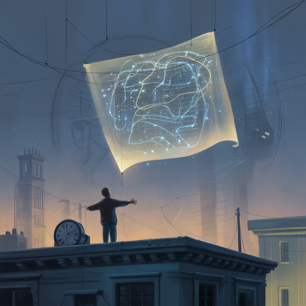 It was folded between the pages of an old ledger in his attic, tucked beneath a pile of newspapers from the 1960s. The paper was brittle at the edges, yellowed by time, but the ink was clear — delicate black lines looping and spiraling like constellations. At first glance, it looked like a child’s drawing, chaotic and nonsensical. But something about it felt… deliberate.