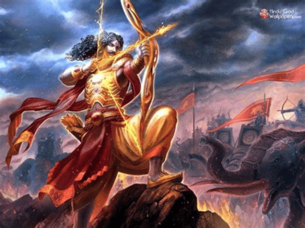 Karna’s experience and ferocity matched Arjuna’s skill and precision, resulting in a stalemate that left the soldiers on both sides in awe.