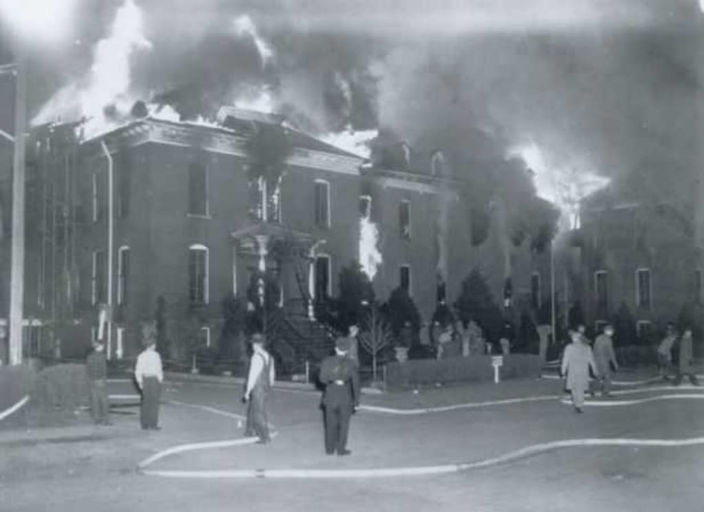 Although the fire department was located nearby, the flames spread very rapidly, fueled by combustible materials throughout the building. The volunteer force of approximately 20 men assembled as quickly as possible, but it was too late to save the building. Obviously, the primary focus of the fire chief at that point was on saving as many lives as possible. At the end of the night, only the scorched brick outer walls of the old hospital remained standing.