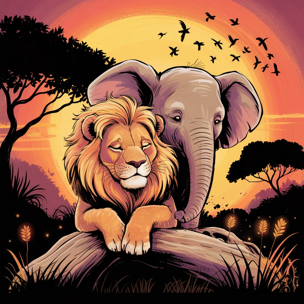 And all who passed by would remember the day the lion and the elephant met—not with growls or warnings, but with hearts open like the sky.