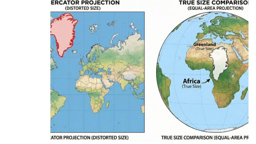 When readers notice that disparity, Greenland's dominance on maps appears to be more of a design decision than a geographical feature.