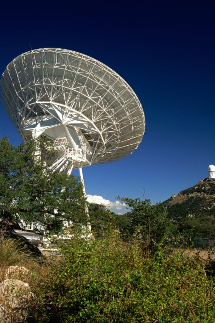 Stand beneath a giant radio dish and you feel small.