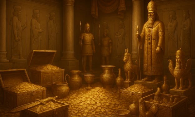"The Empire Beneath the Sands: The Untold Wealth of the Persian Empire". AI-Generated.