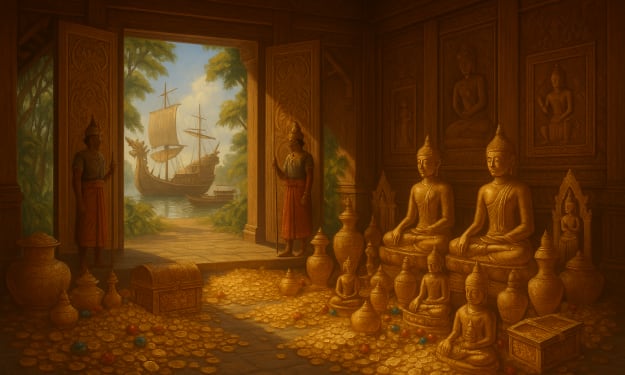 "The Lost Treasure of Srivijaya: Southeast Asia’s Forgotten Maritime Empire". AI-Generated.