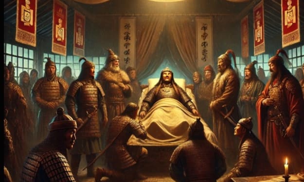 The Final Moments of Genghis Khan. AI-Generated.