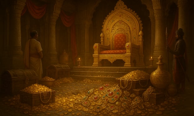 Throne of Gold: The Hidden Wealth of the Pandiyan Kings. AI-Generated.