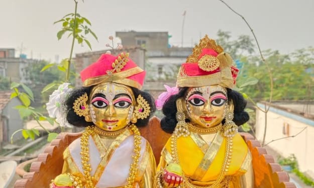 Title: The Eternal Love of Radha and Krishna ❤️❤️❤️❤️❤️❤️❤️❤️❤️❤️❤️❤️❤️❤️❤️❤️ Once upon a time in the sacred land of Vrindavan, the divine love between Radha and Krishna blossomed like the most enchanting flower. Their love was not ordinary; it transcended time, space, and worldly attachments. It was a love that resonated through the universe, sung by poets and cherished by devotees for eternity.❤️❤️❤️❤️❤️❤️❤️
