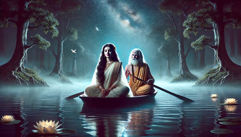 One day, as Parashara was traveling along the banks of the Yamuna River, he encountered Satyavati, a beautiful young woman of humble origin. Satyavati was the adopted daughter of a fisherman and spent her days helping her father. She ferried passengers across the river and took great pride in her work, though her heart longed for something beyond her modest life.
