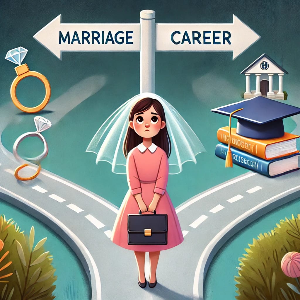In the journey of life, young women often find themselves at a crossroads—one path leading to early marriage, the other to a future full of career possibilities. In many cultures, tradition pushes girls toward settling down early, but what if choosing a career first could change everything? This story explores the importance of prioritizing personal growth, education, and independence, encouraging girls to dream beyond societal expectations.