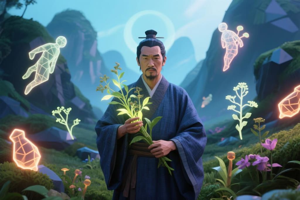 One by one, he consumed herbs. His body, translucent as jade, revealed the toxins’ paths: some darkened his liver, others scorched his lungs. On a fateful day, he chewed Duanchang Cao (断肠草, "Gut-Severing Grass"). The poison ravaged his intestines, yet with his last strength, he scribbled remedies in the Shennong Bencao Jing—the world’s first pharmacopeia.