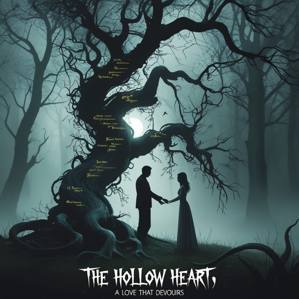 That night, Evelyn dreamed. She stood in the woods, alone, with the Lover's Tree looming above her. Its branches curled and twisted, and from its trunk emerged a figure—a man with hollow eyes and an open chest where his heart should have been. He reached out to her, his hands clawing, and whispered softly, "You are mine now."