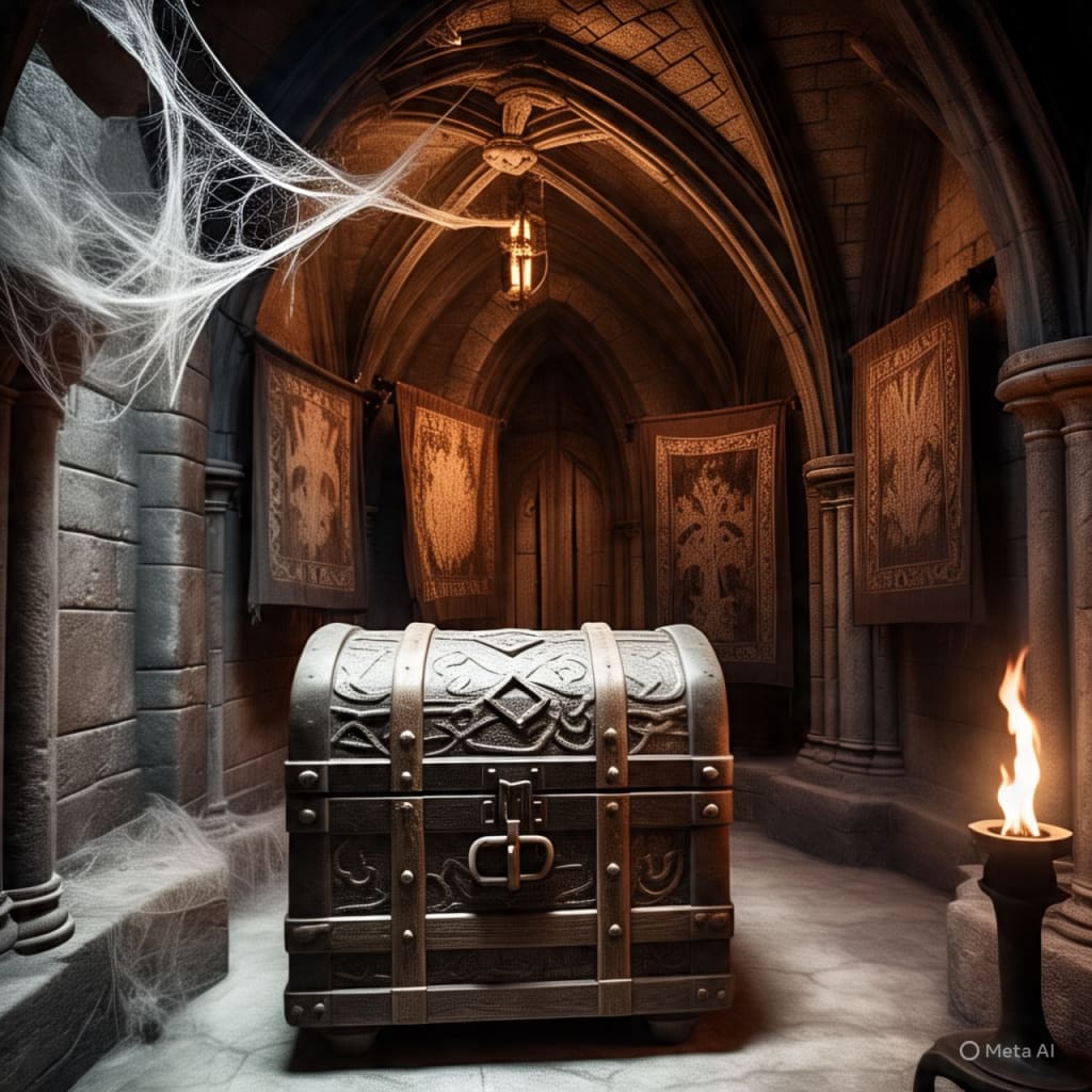 She remembered the locked cabinet in the study. Rushing back, she rummaged through it until she found a small brass key tied to a red ribbon.