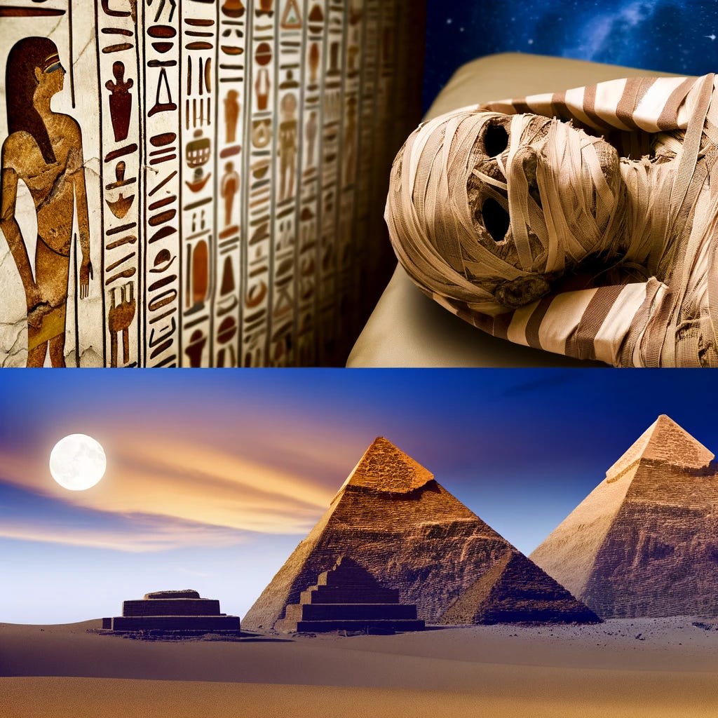 - Funerary Practices: The Egyptians placed great emphasis on the afterlife, believing that the Pharaoh’s journey to the next world was crucial for maintaining cosmic balance. Elaborate mummification practices were employed to preserve the body for eternity. The rich funerary goods buried with the Pharaohs were intended to provide for them in the afterlife. These practices were deeply tied to their beliefs in immortality and the continuation of divine rule.