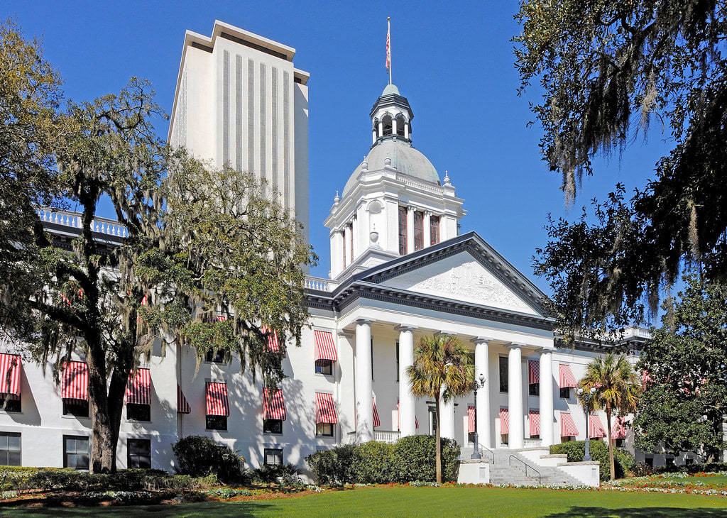 The capital of Florida is Tallahassee. The name Tallahassee is a Muskogean Indian word that means “old fields”. It was chosen as the capital due to its location equidistant from St. Augustine and Pensacola. In 1845 a Greek revival masonry structure was chosen to be the Capitol building. Today the “Old Capitol” (pictured above) stands in front of the Capitol high-rise building that was built in the 1970s.