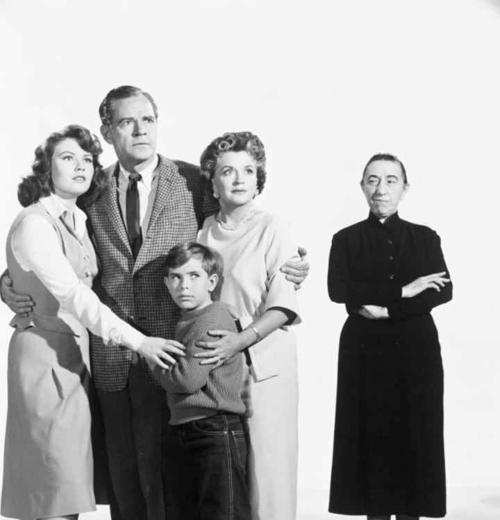 A family—the Zorbas (Donald Woods and Rosemary DeCamp)—with two kids named, incongruously, Buck and Medea (Charles Herbert and Jo Morrow, respectively) inherit a big spooky manor house, haunted because old man Zorba dabbled in spiritualist séances and experiments with the dead. The house comes complete with a live-in servant played by the original Wicked Witch herself, Margaret Hamilton. The movie is worth seeing for her alone.