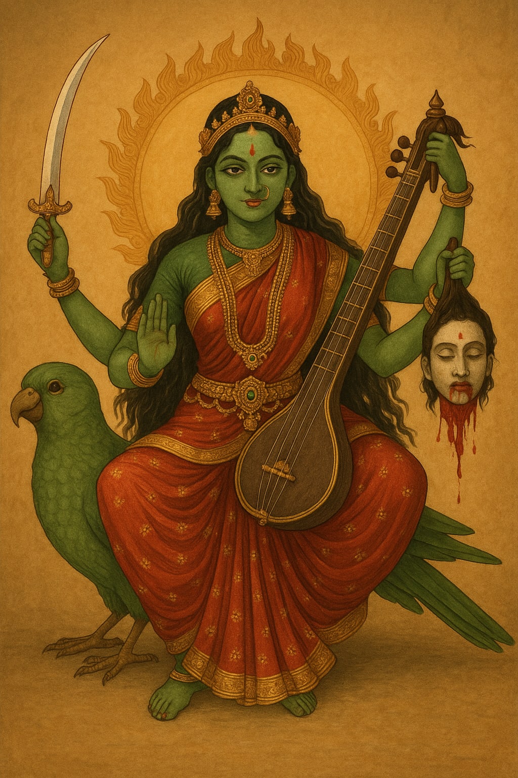 And sometimes, in the old curio shop on Park Street, a strange idol appears for sale—four arms, wide eyes, a skull in one hand, and a veena in the other.