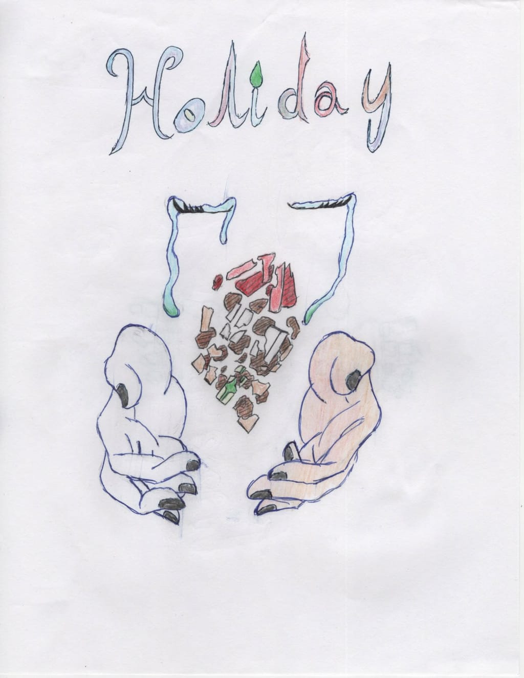 Polaris gasped as the crunching stopped and became chewing. She slowly turned around to see a woman with long brown hair, with stained hands and clothes, raising something above her head. She stood up and dropped it into her mouth. She swallowed it whole as blue glimmers started to appear in the fear mist and around her body The woman began to take on Polaris’ appearance. The fear mist and blue glimmers swirled into her body. The woman made eye contact with Polaris. She realized that she was looking at herself.