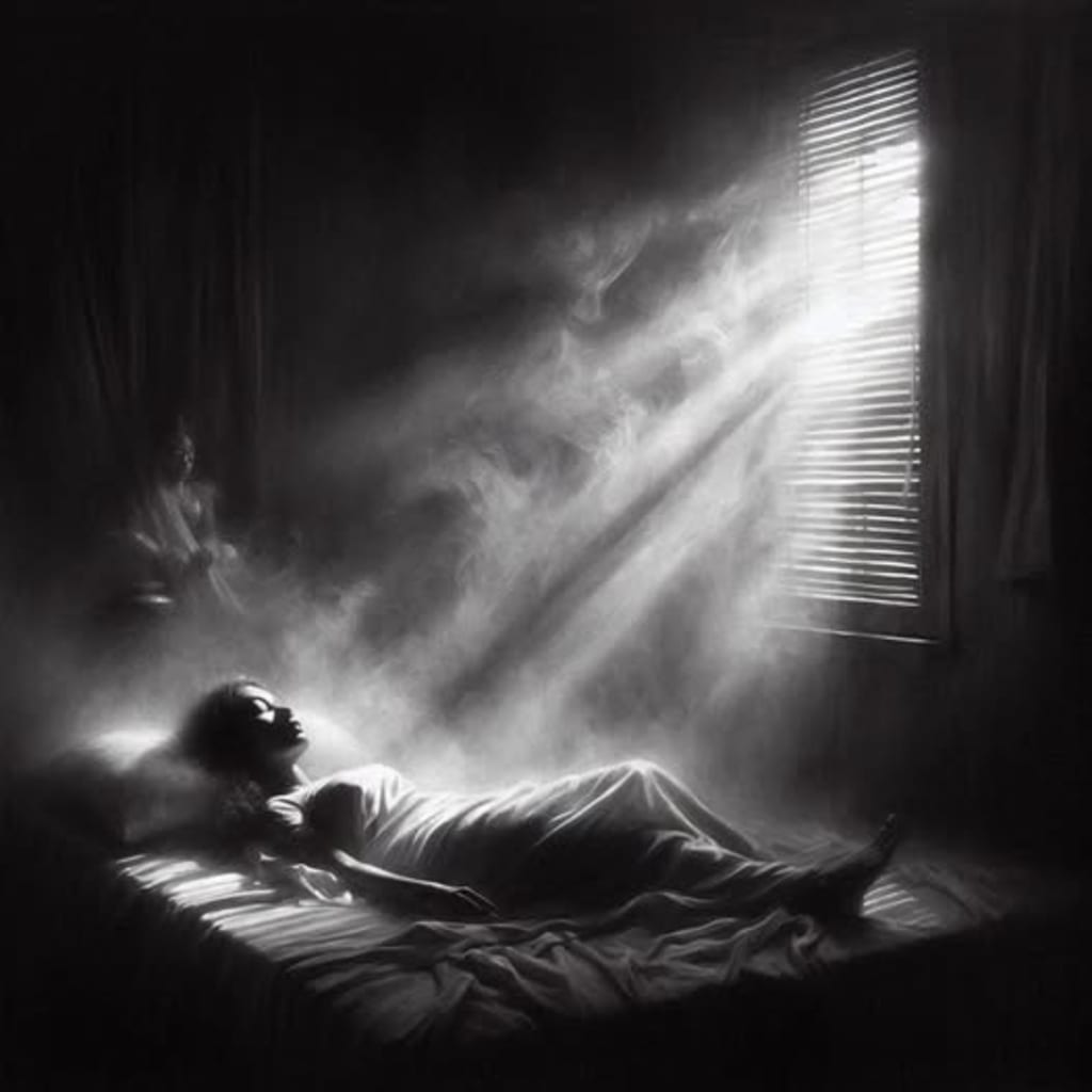 Tonight, however, will not be a regular night of sleep. The phantom menace will swing by. Like a dark cloud of smoke slowly spreading through the air, it hovers right over me. The question is: where did it come from? Why is it here? Is it part of my dream? Is it someone's soul manifesting into my space?