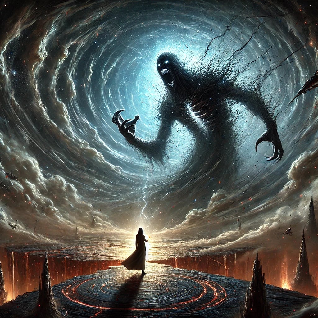 A violent force tore through the air, sending a shockwave outward. The ground cracked beneath her feet, and the sky above split, as if something massive had been forced open.